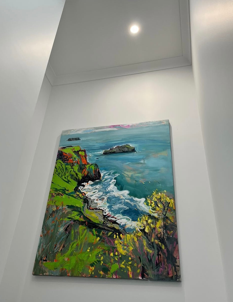 I fell in love with one of Kris Cush’s pieces, but didn’t get in quick enough to make it my own. Kris proposed a commission piece instead. I sent 5 different images and allowed her to choose one that inspired her. I’m so glad I trusted her to make magic because boy did she! The beautiful piece now takes pride of place in our stairwell and has such incredible impact - it’s a real showstopper.